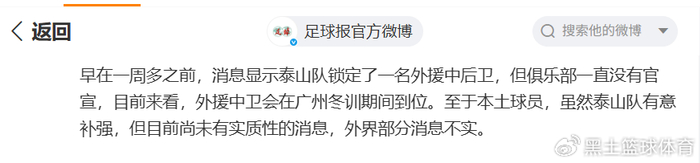 根据《足球报》的爆料,中超老牌豪门山东泰山队早在一周之前,就已经锁定了一名中场外援,但是俱乐部并没有官宣这一消息。这名外援具体是谁,暂时不得而知。不过,这名外援中场会在广州冬训期直接与泰山队汇合。